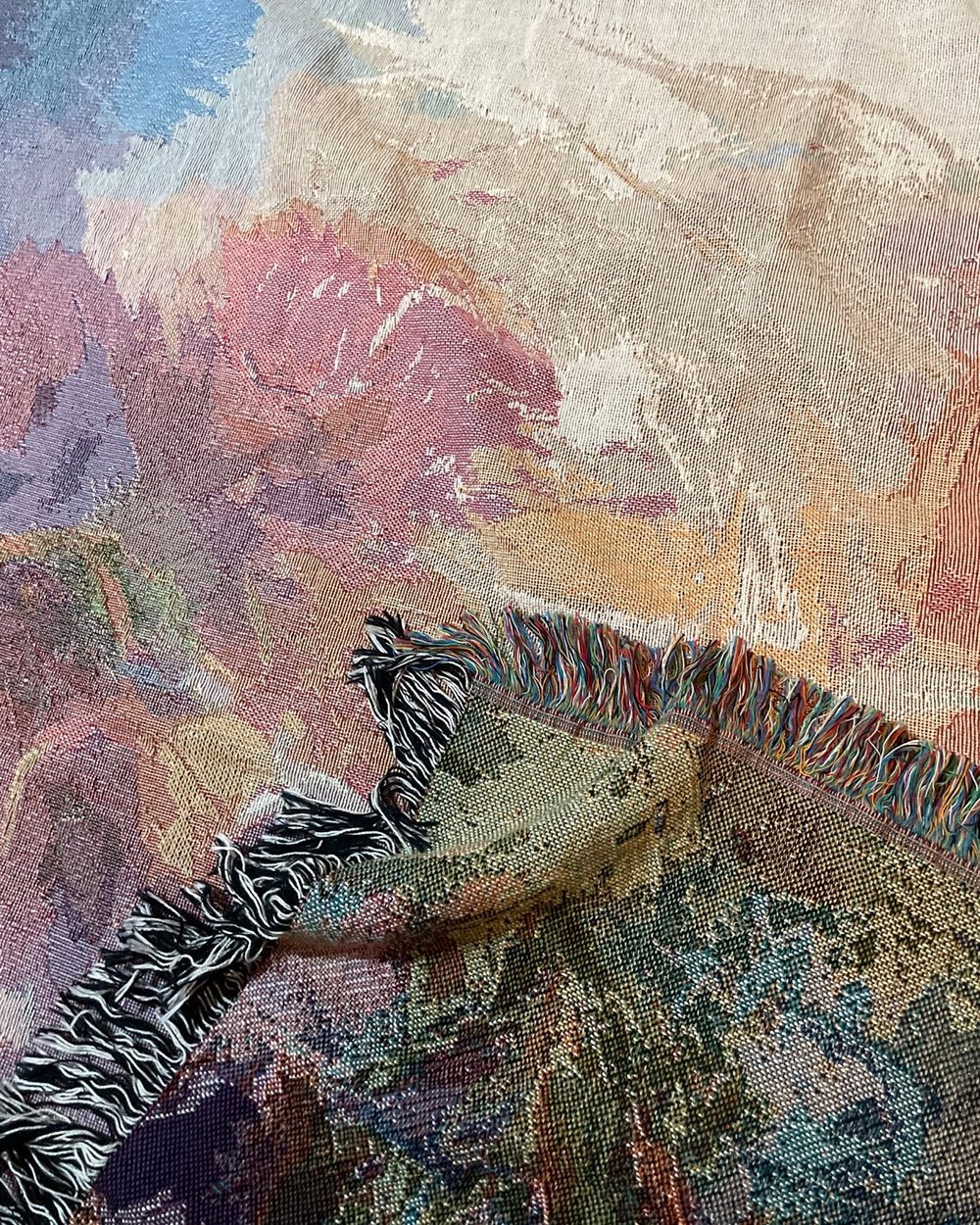Image is woven directly into blanket, not screenprinted