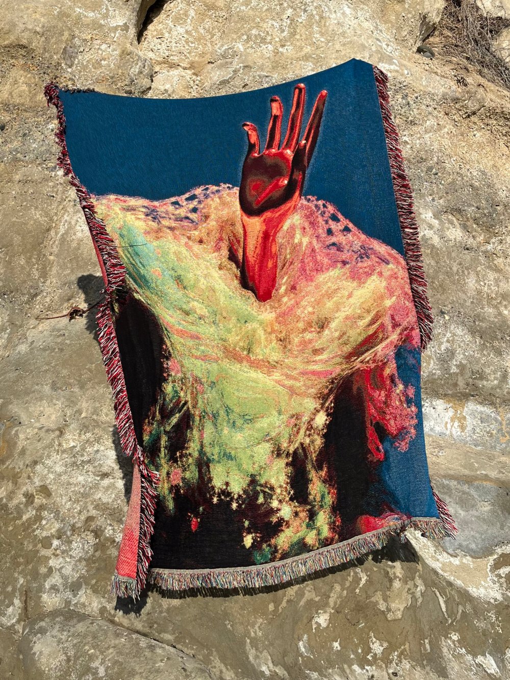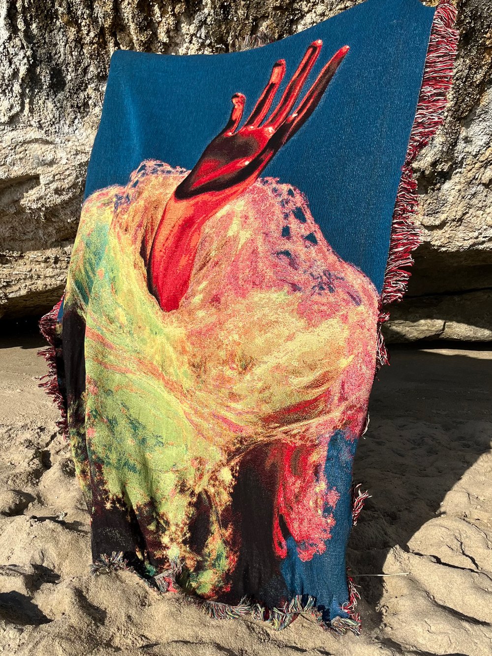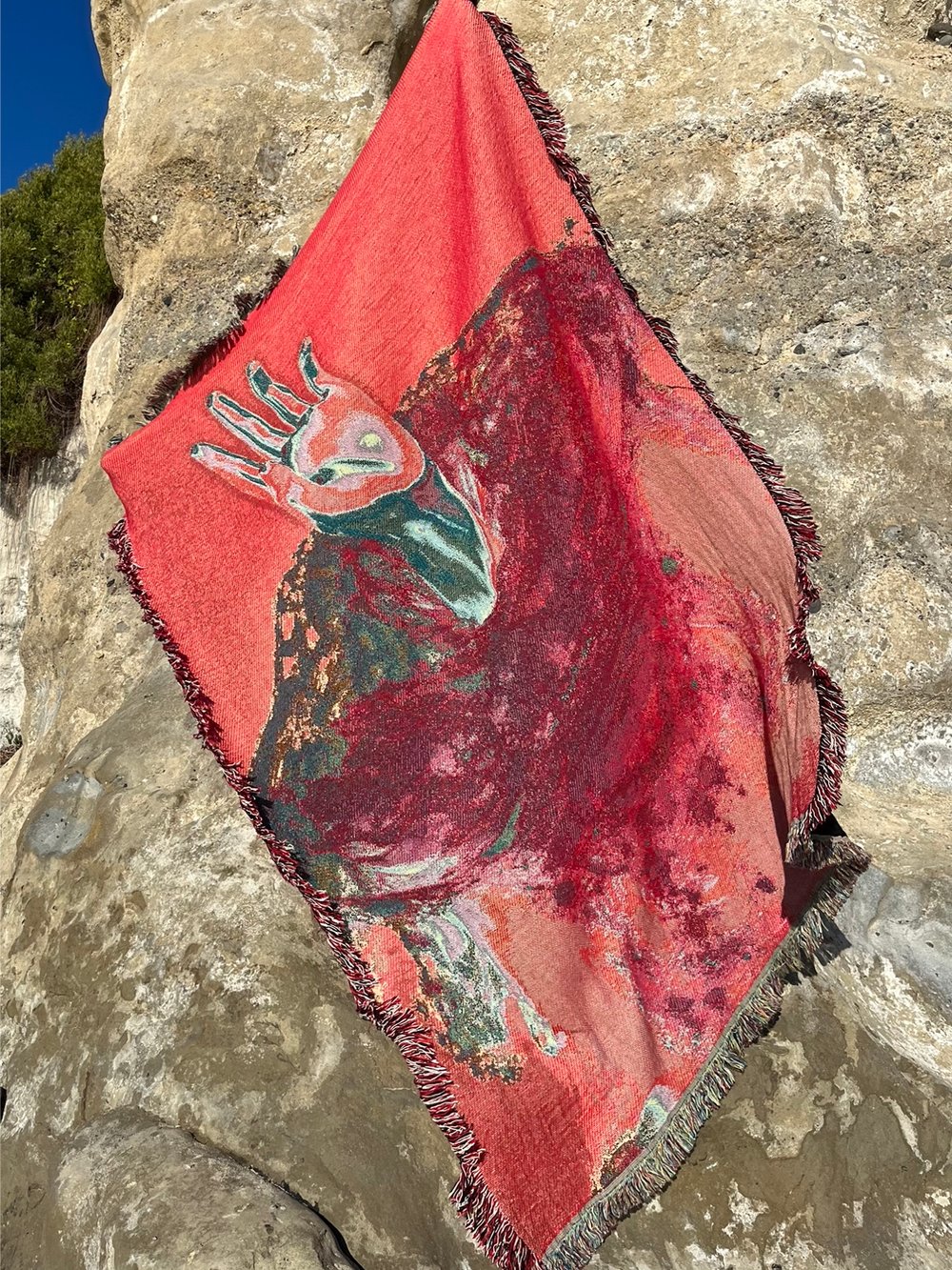 This blanket was woven after extensive yarn color testing until the proper representation of the original piece was reached. Due to the custom stringing of the tapestry loom for these colors, there is a limited number of blankets available in this run.
